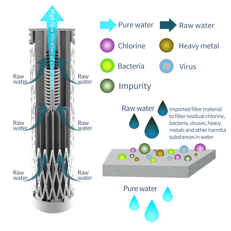 Our filtration system adopts multi-layer filtration technology, which can effectively remove harmful substances in water, such as bacteria 99.99%, heavy metals, residual chlorine and odour up to 99%, to ensure a cleaner and safer water source. Built-in advanced filter cartridges provide fast filtration and every sip of water quickly reaches drinking standards. We guarantee the safety of water quality through strict testing and efficient technology, providing users with a healthy and reassuring drinking experience.